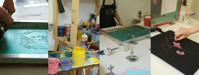 In the studio, we offer professional workshops for up to four participants, as well as private sessions. Screen printing workshops can also be arranged for couples, families, friends, or small groups of up to six people. Additionally, we provide workspace rentals and screen preparation/photography services for designers and artists.