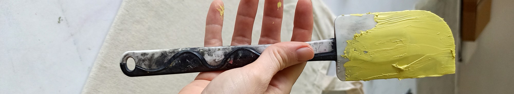I used a spatula to take paint out of the box and put it on the screen mesh, above the print, white the amount that would be enough for me to print at that print size. You can of course use any other tool to remove the paint, but a silicone spatula like this is the most convenient.