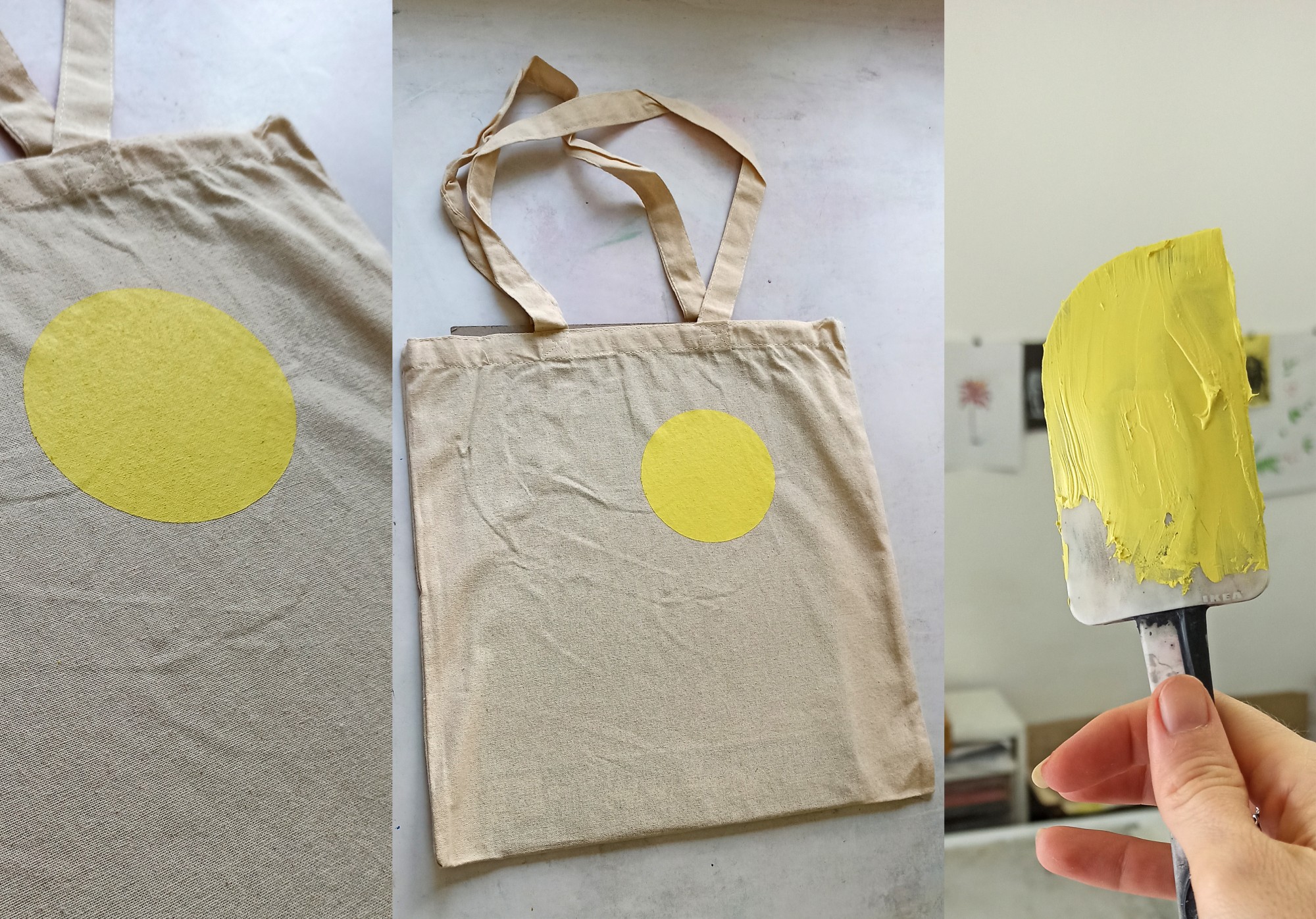 On my tote bag I am printing one big circle - but you can make a stencil of you choice.