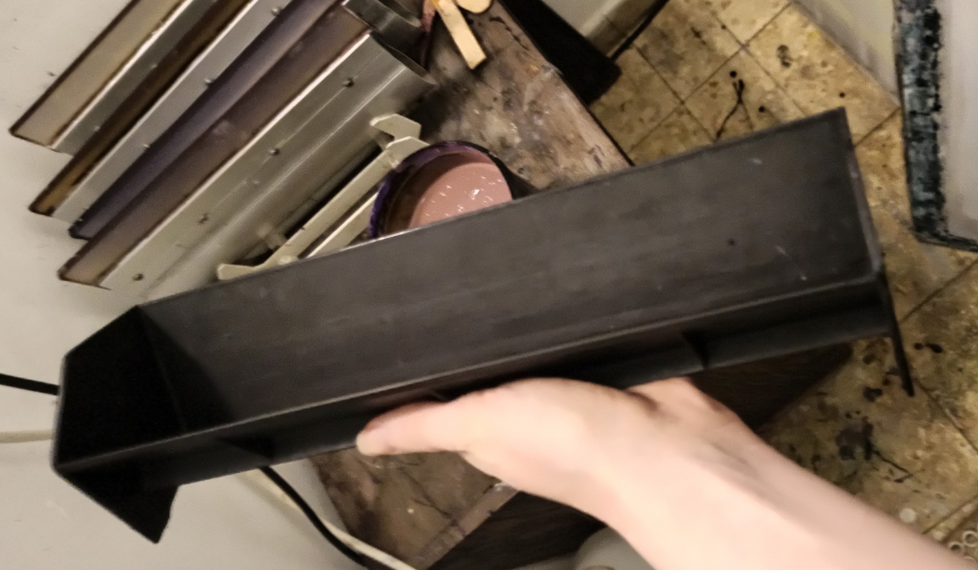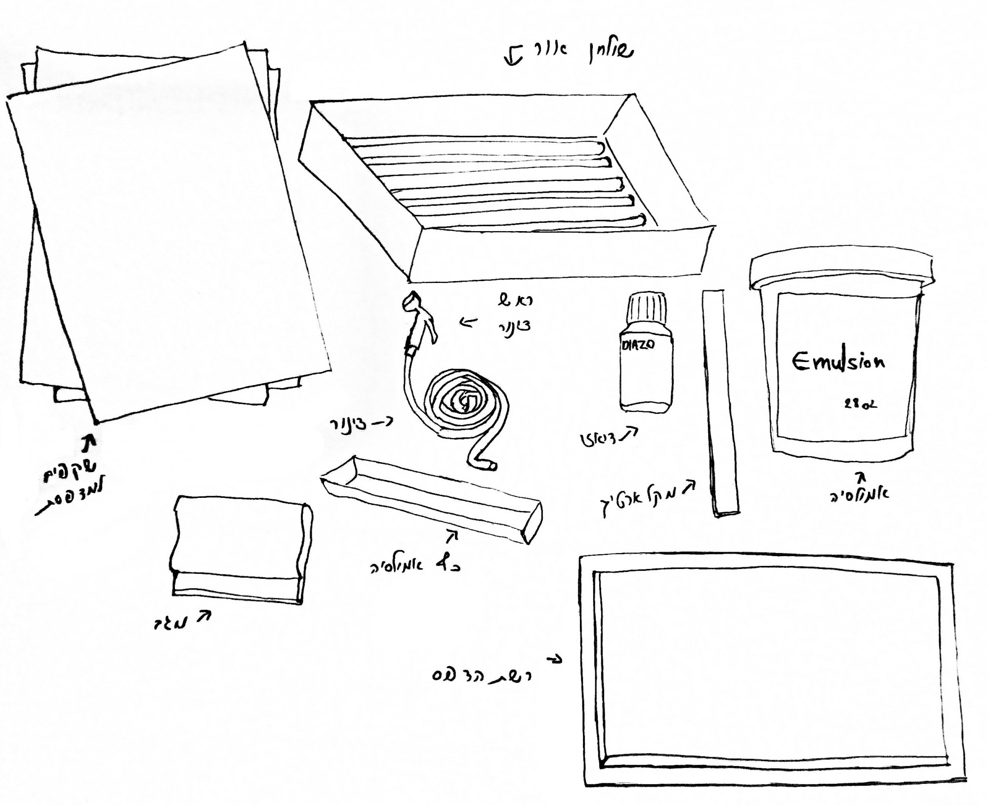 הייבוש צריך להיעשות כשהרשת מונחת במאוזן, כשהצד השטוח שלה פונה כלפי מטה. אני עושה את זה בארון ייבוש אטום לאור שבניתי ומותאם לגדלי הרשתות שיש לי. הרעיון הוא לתת לרשת להתייבש באויר בלי שלכלוך או אבק יתפסו בה ויפריעו אחר כך להעביר אליה כראוי את הגרפיקה. כשהיא ייבשה לגמרי, האמולסיה אפילו יותר רגישה לאור, לכן שלב הייבוש ושלב הקרנת הדימוי על הרשת נעשים בחדר חשוך מאוד.