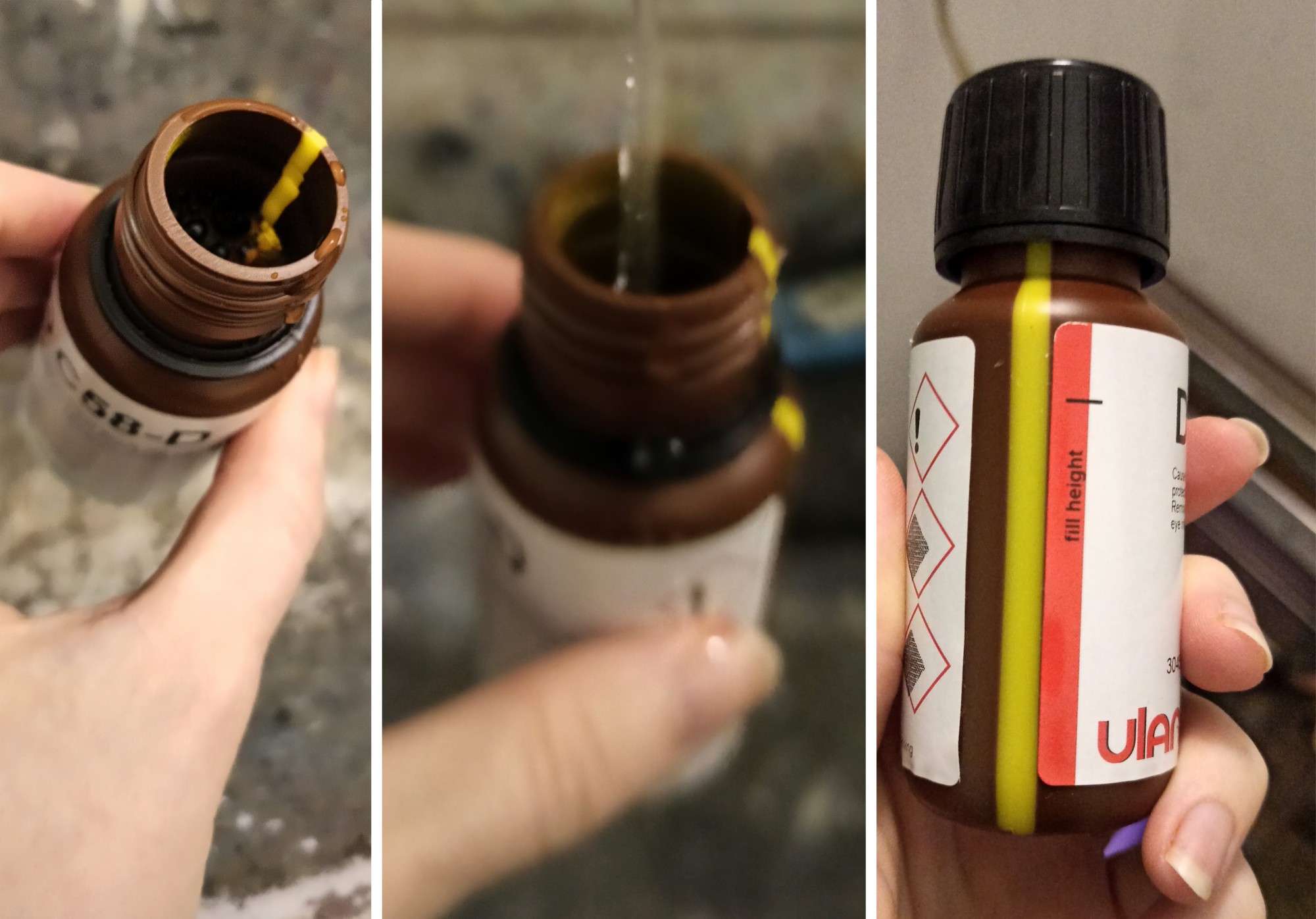 לבשו כפפות לטקס ופיתחו בזהירות את הפקק של הבקבוק וקלפו את הסגירה ההרמטית שלו. יש למלא את הבקבוק עד לגובה המסומן עליו במים רגילים מהברז. סגרו היטב ונערו ביסודיות כך שכל האבקה תתערבב באופן אחיד עם המים (משהו כמו דקה של ניעור מהיר).