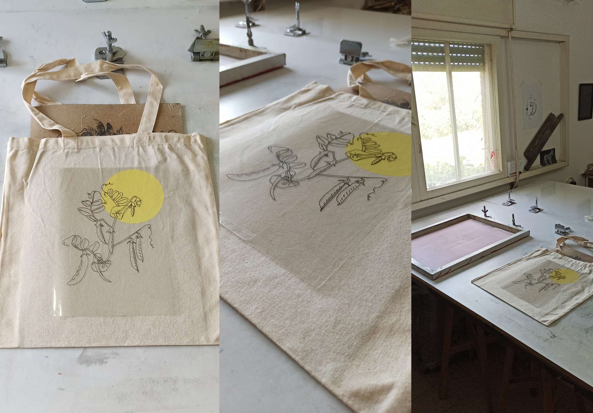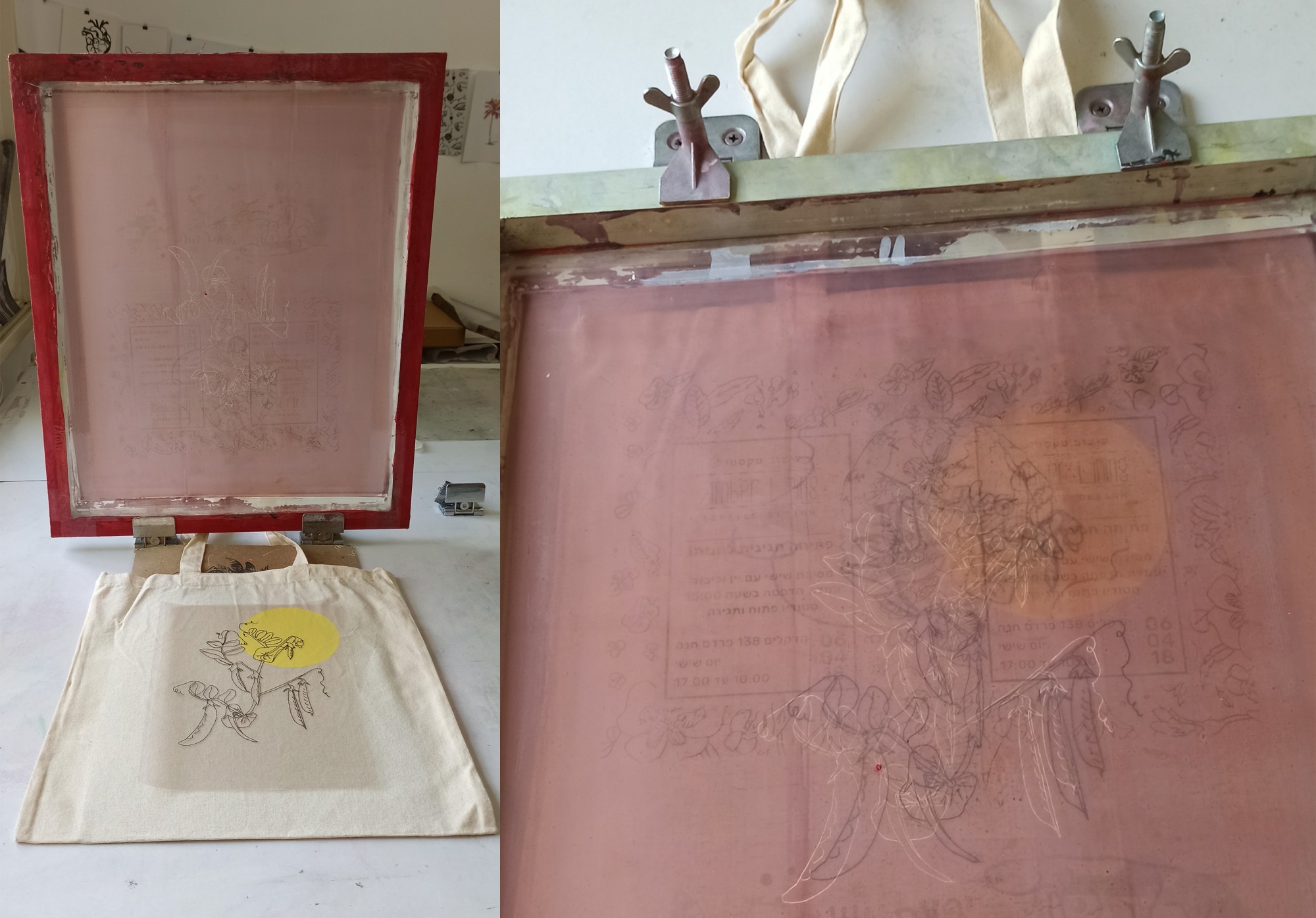 מי שזוכר/ת, התחלתי בפוסט הקודם בבלוג הדפסה על תיק בטכניקת הדפס רשת עם סטנסיל. בפוסט הזה, כדי להדגים טכניקת הדפס רשת עם אמולסיה צילומית, אמשיך להדפיס על אותו תיק שכבת הדפס נוספת. קדימה, בואו נתחיל: