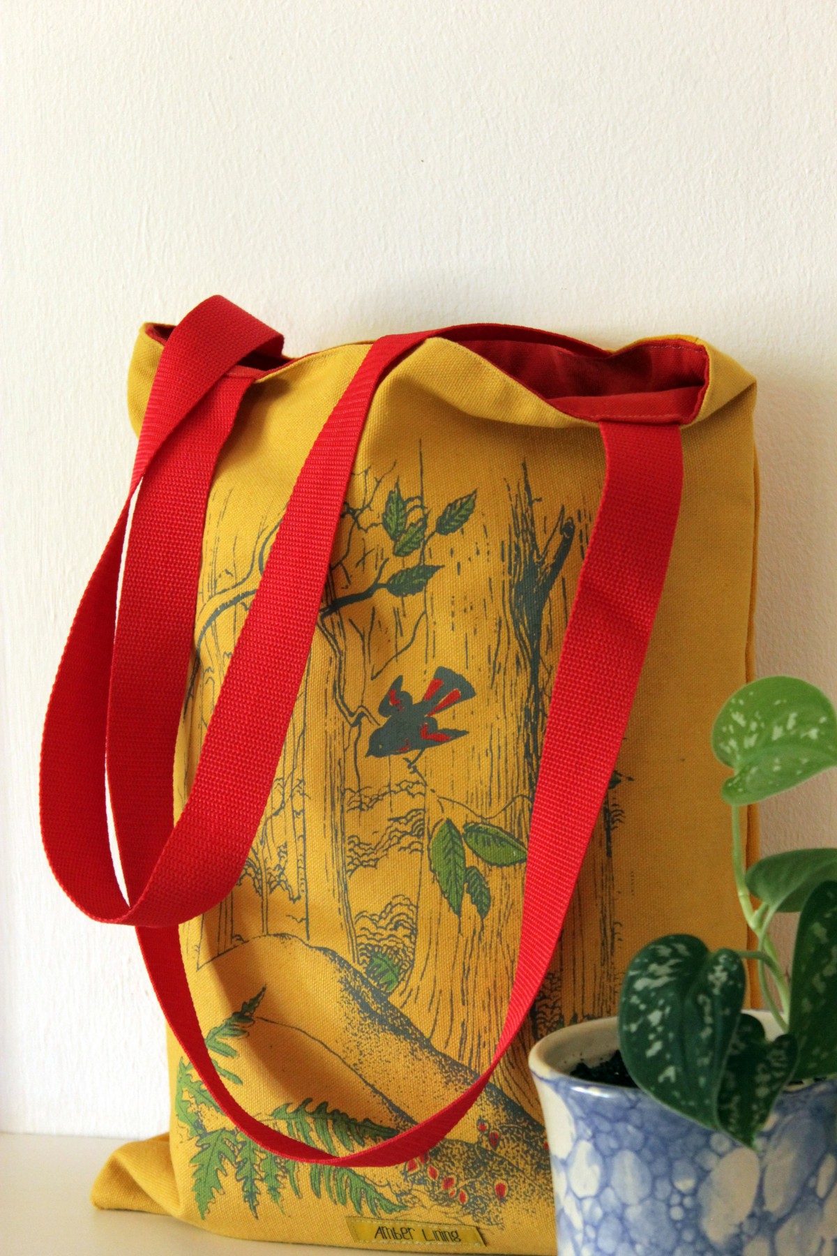 Forest mustard and red tote
