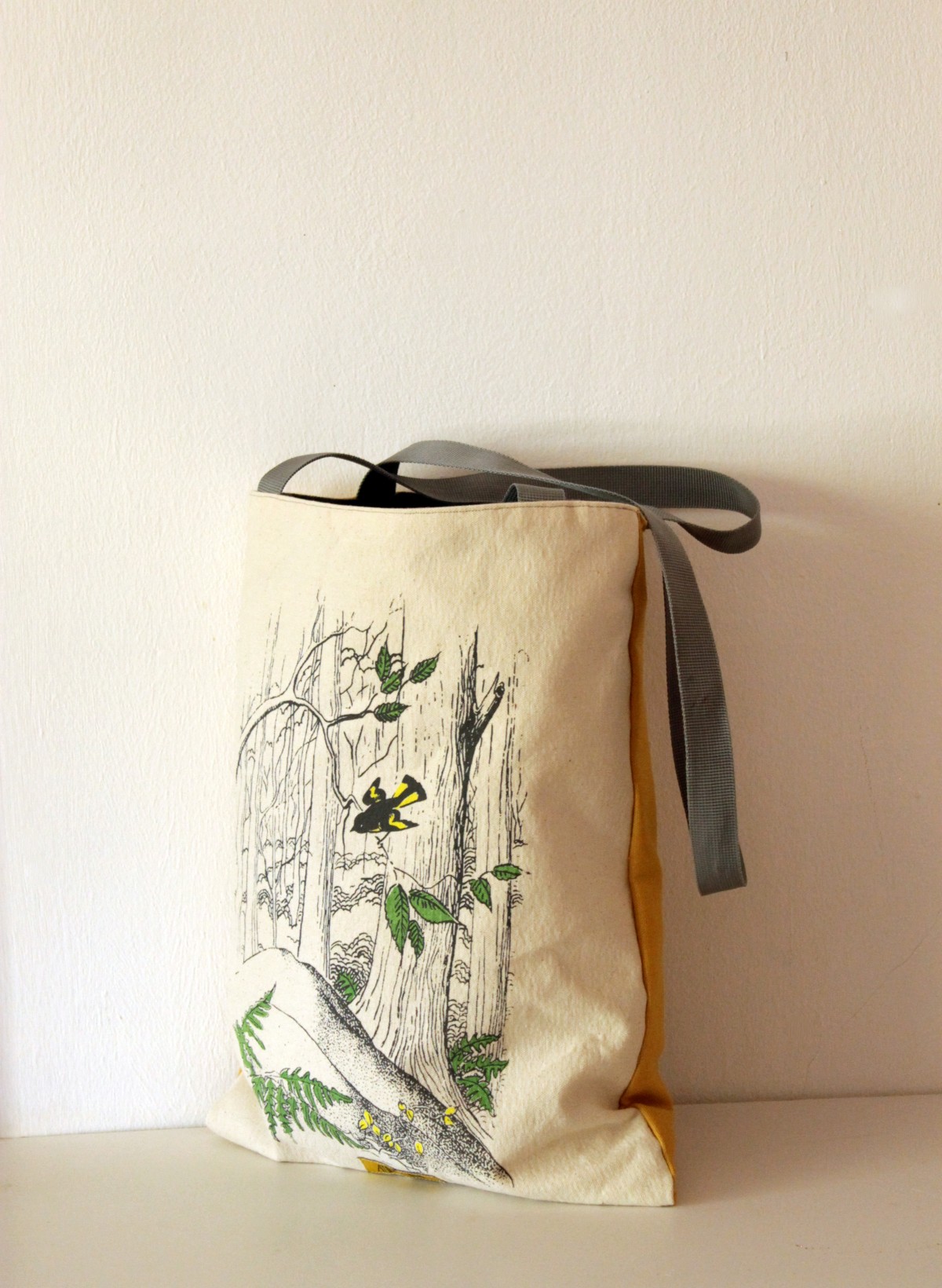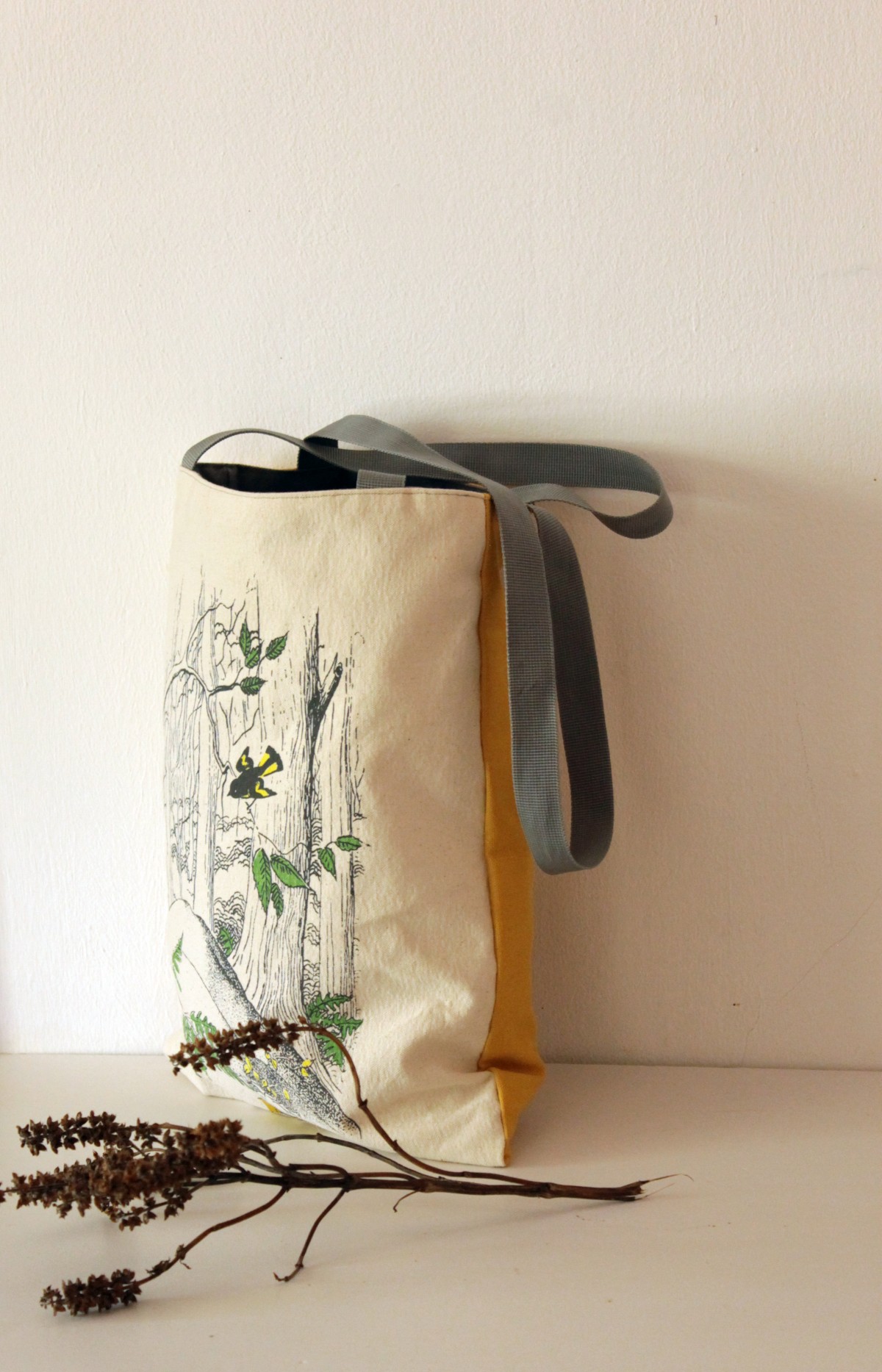 The tote bag is 12" x 15.3" (39cm x 31cm), straps are 69cm long.