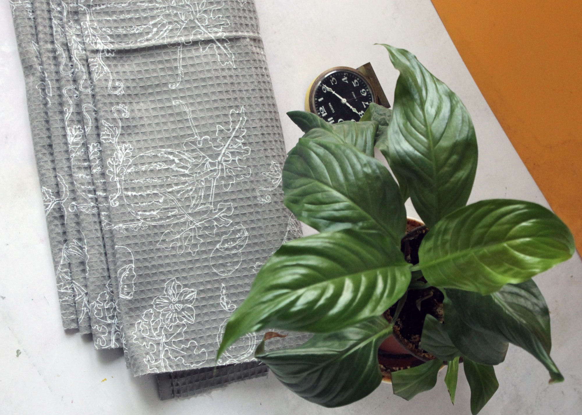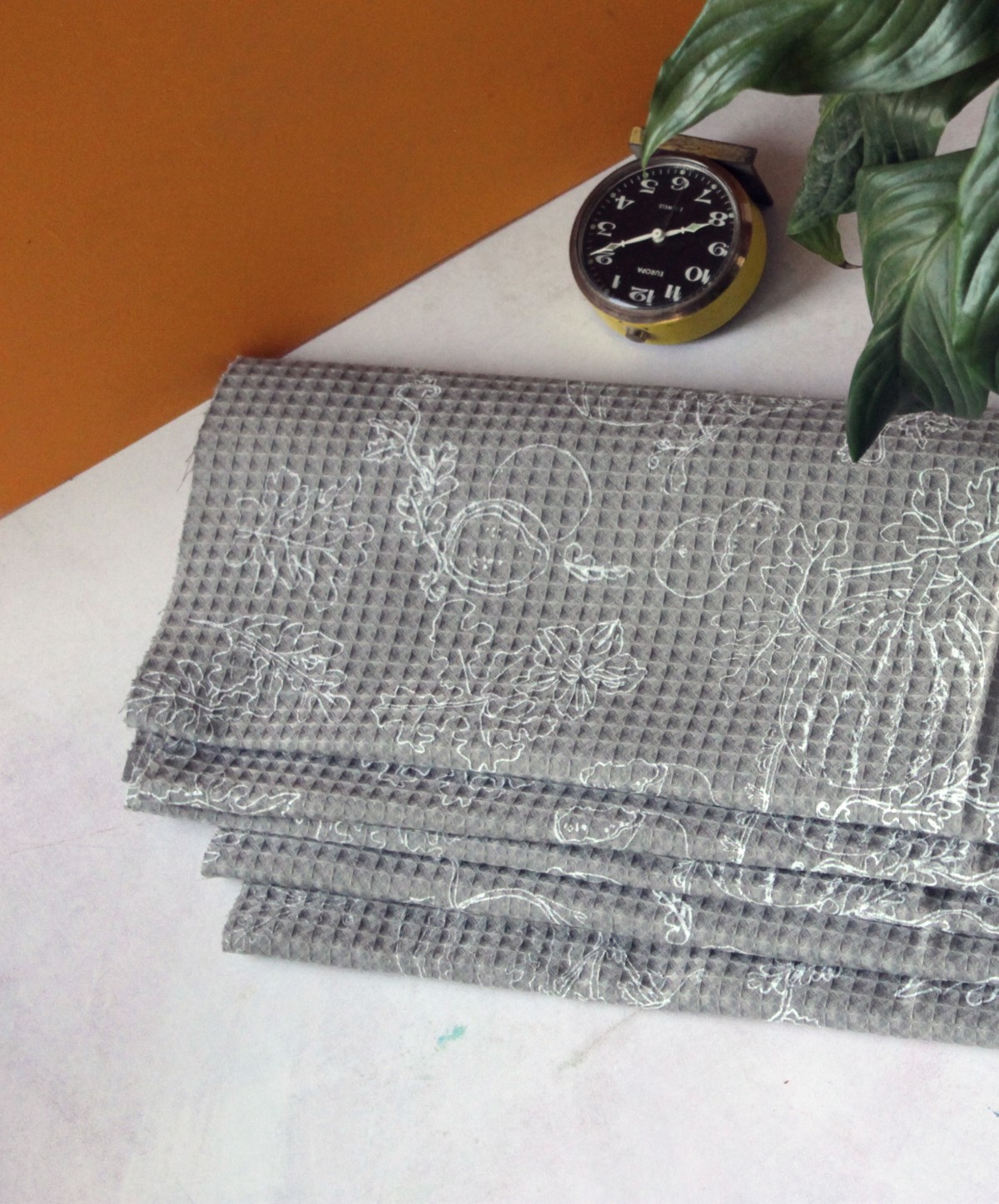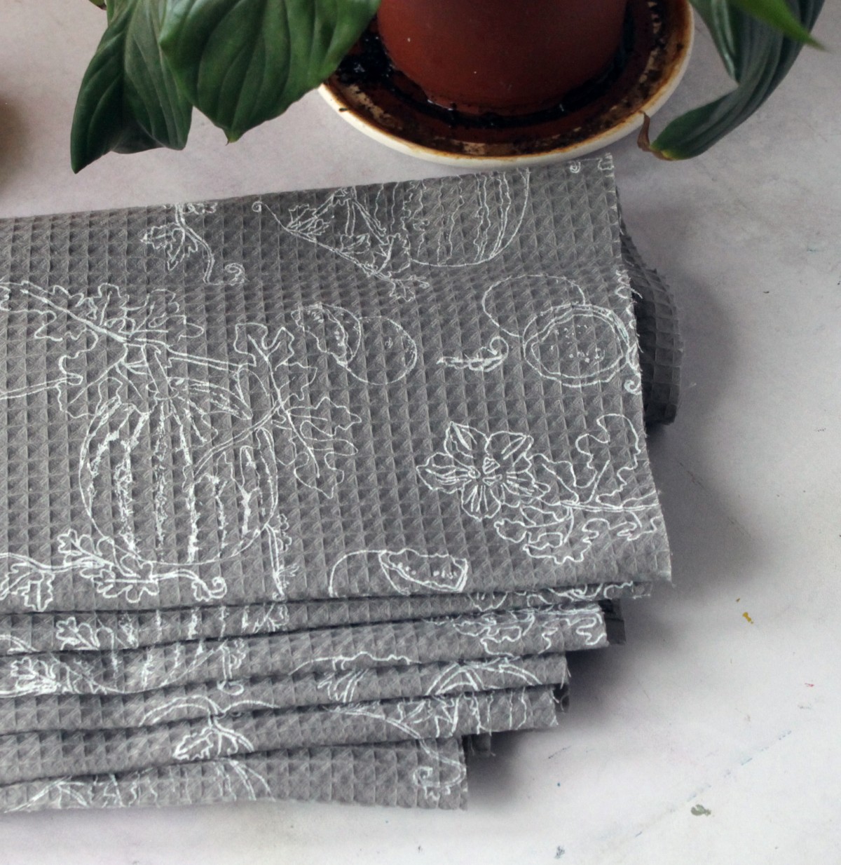 Cotton Pique fabric, hand screen printed