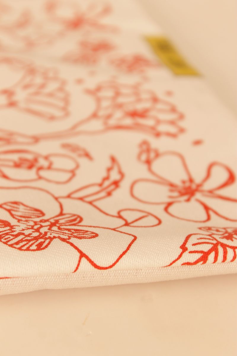 It was screen printed with flowers illustration in red.