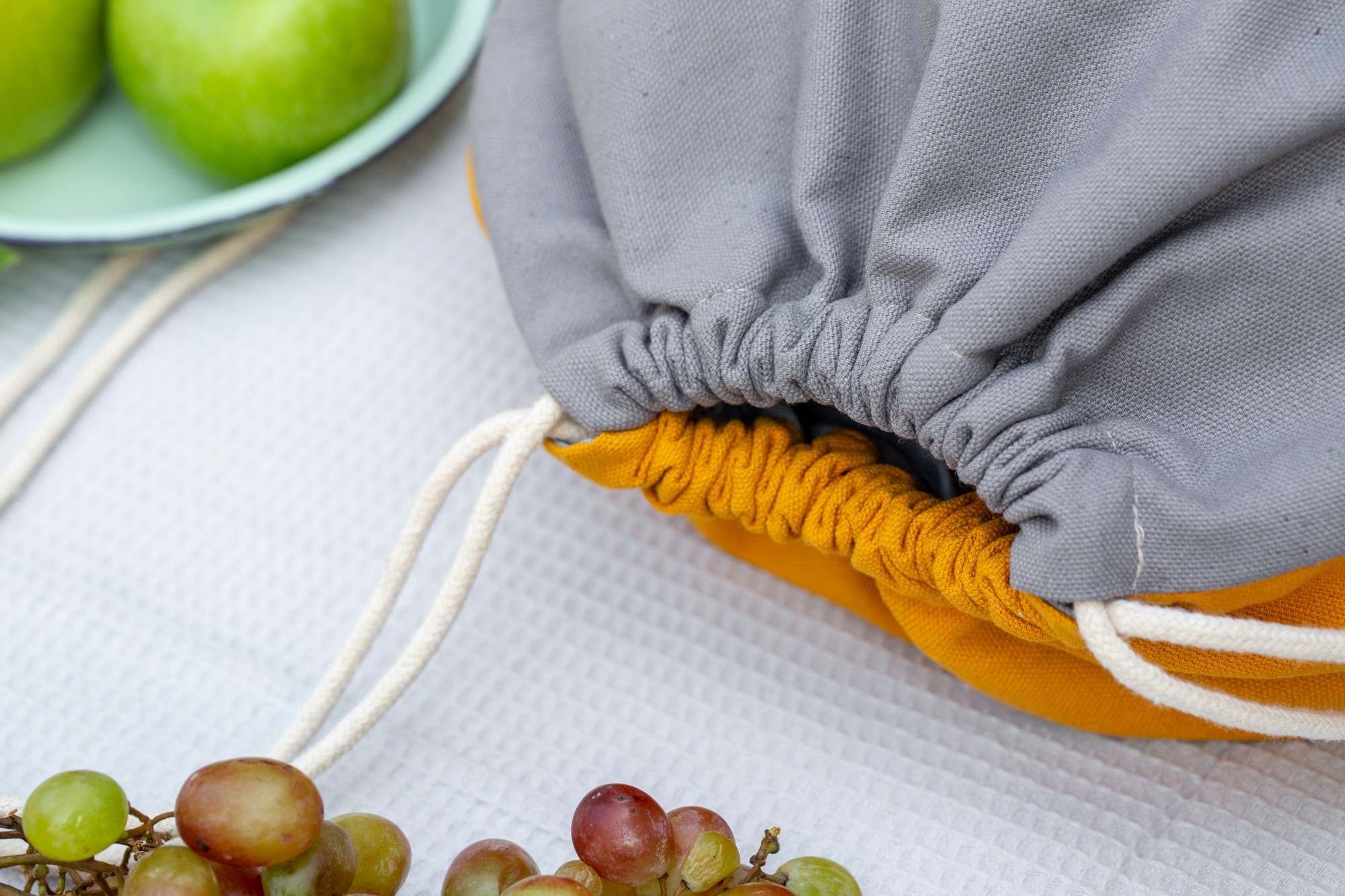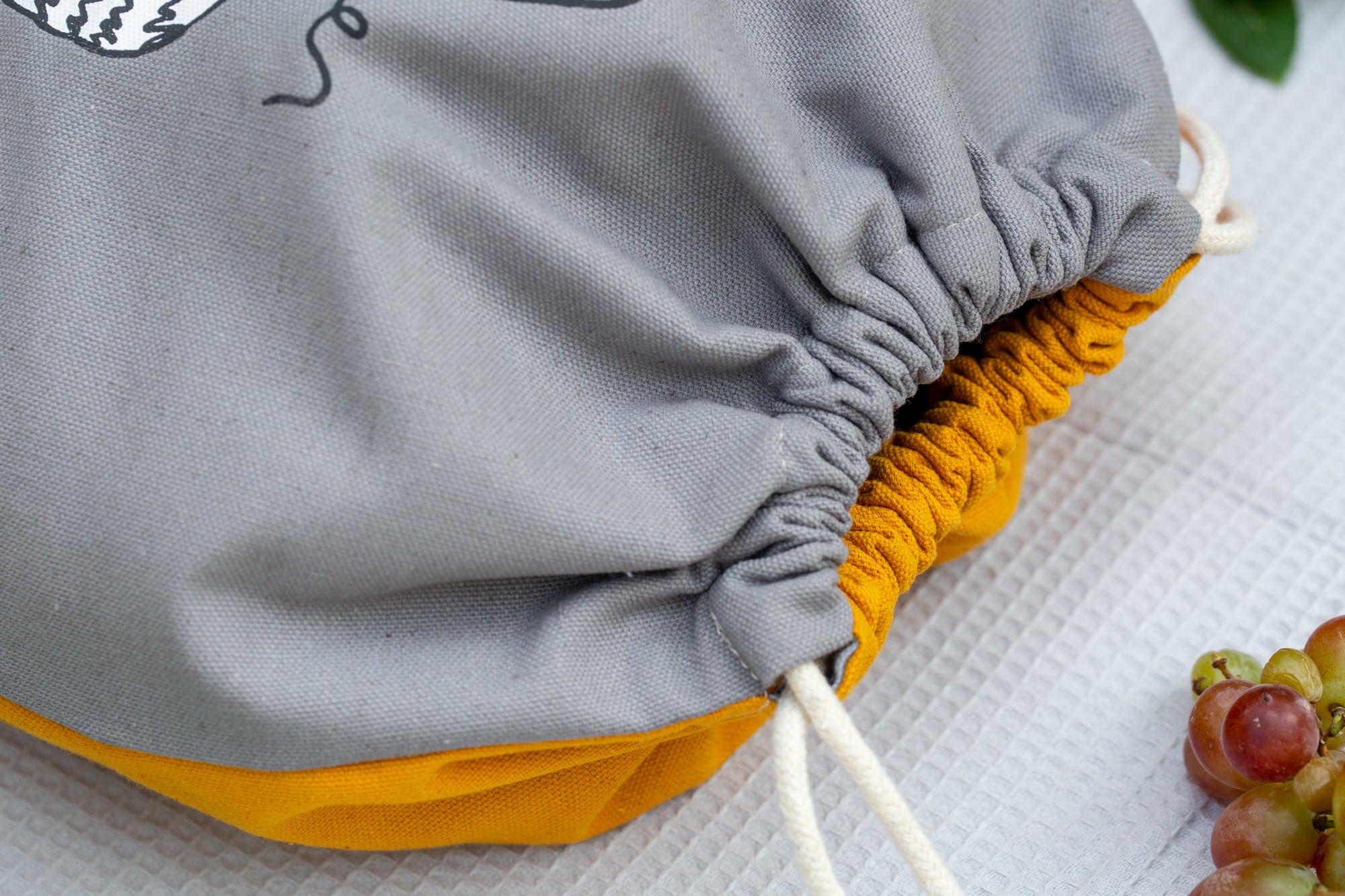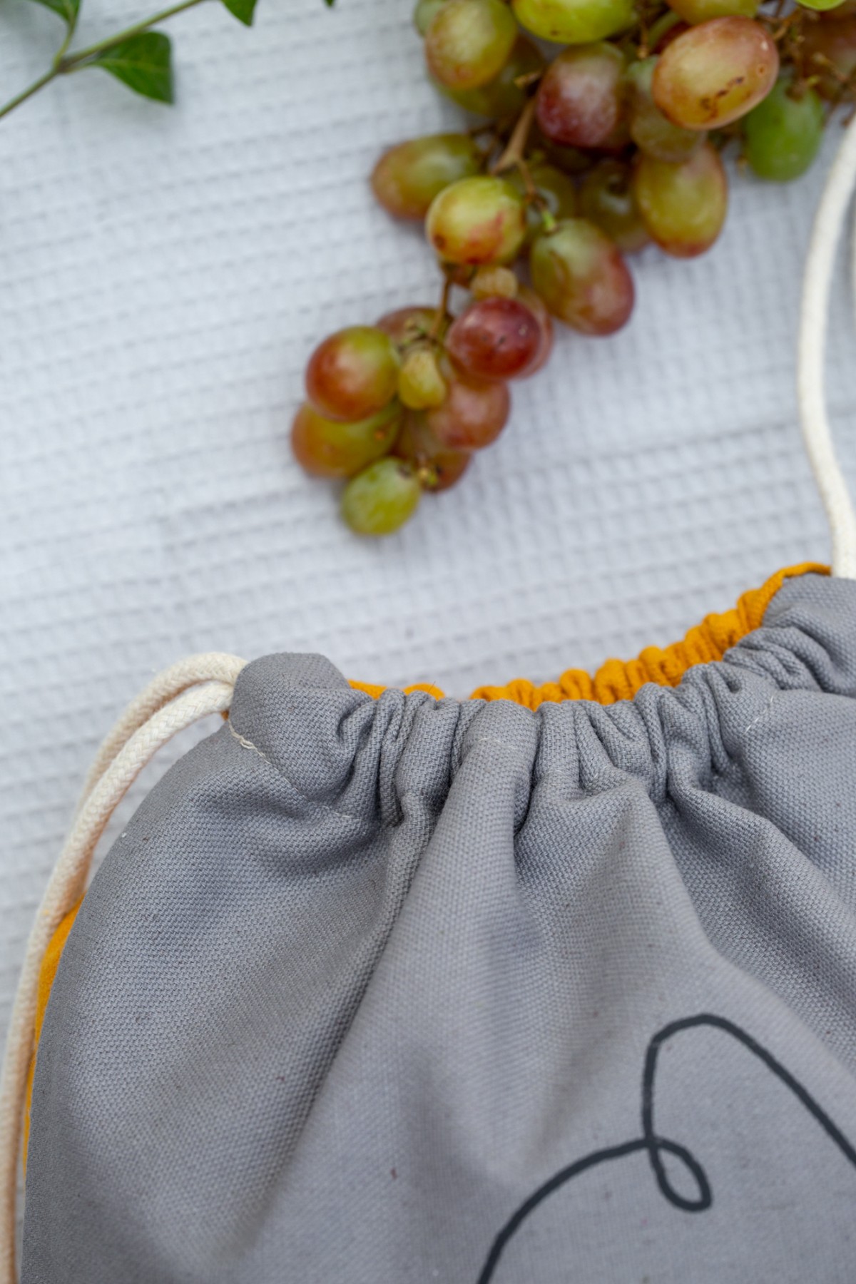 Gray drawstring bag
