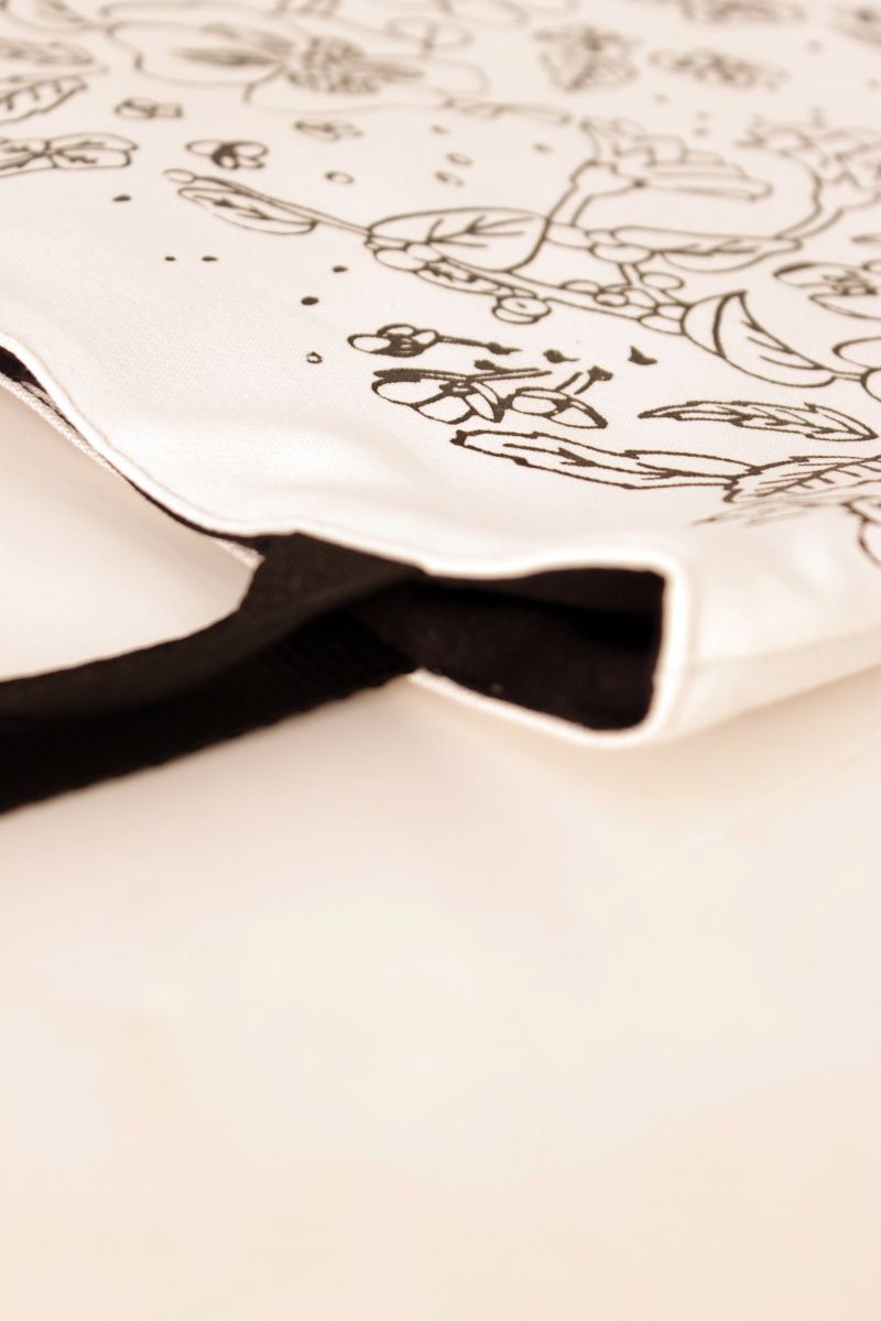 It was screen printed with flowers illustration in black.
