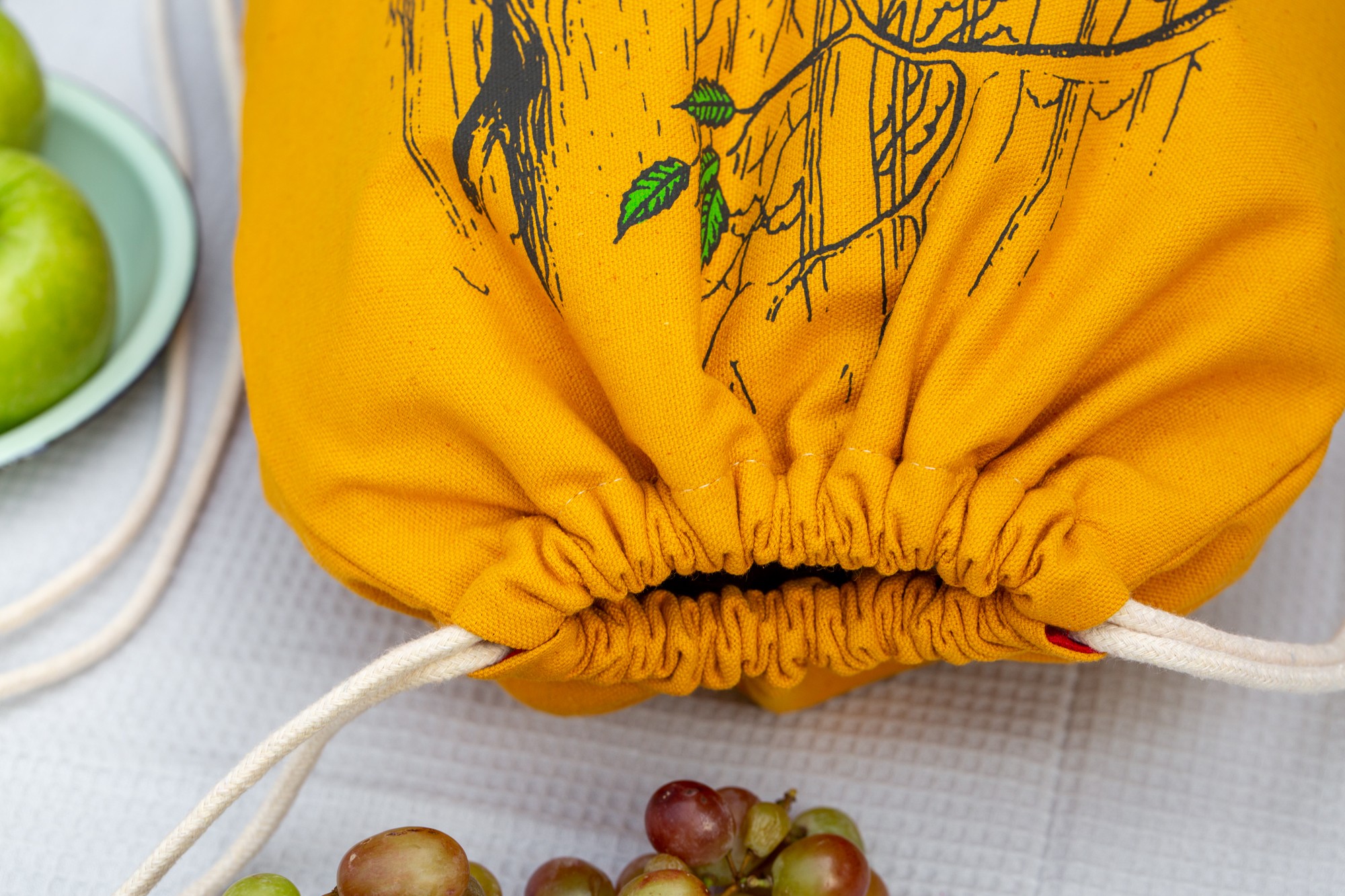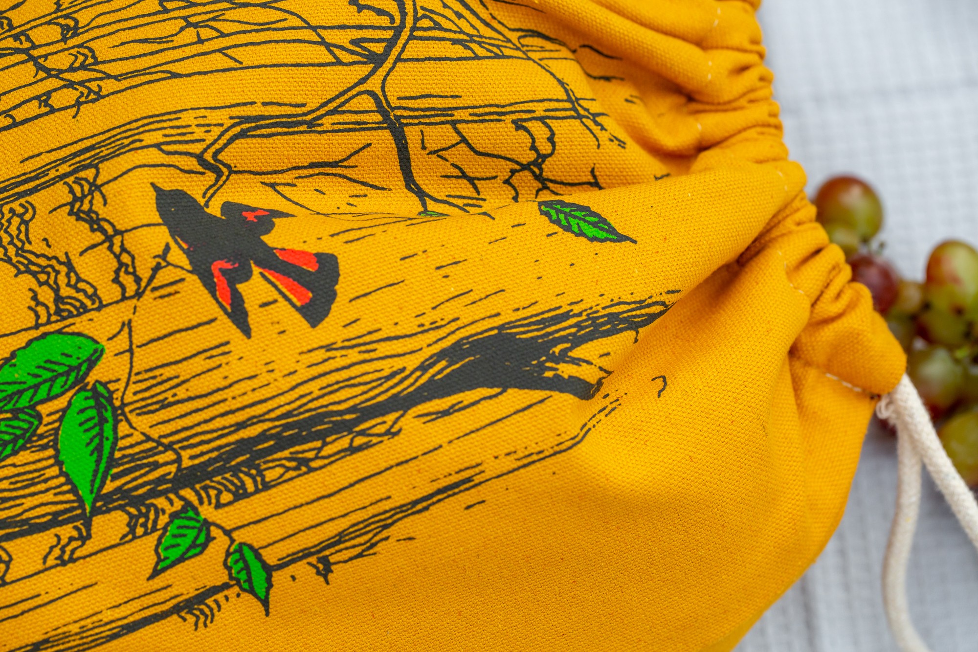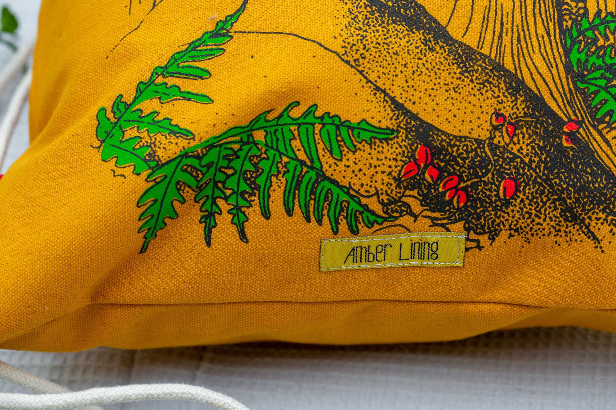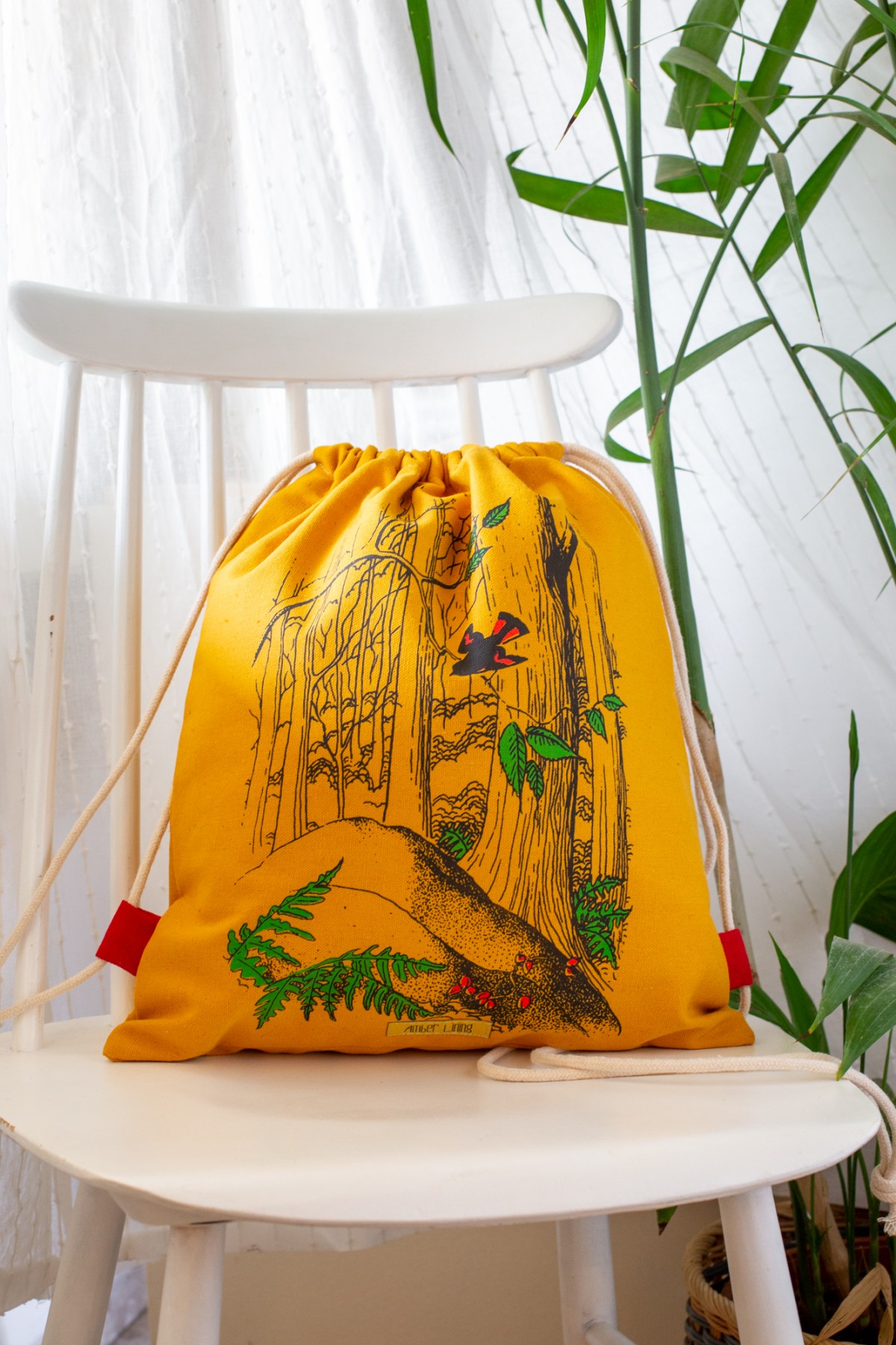 The body of the bag is 100% a high quality cotton and it was screen printed with forest illustration in black.
