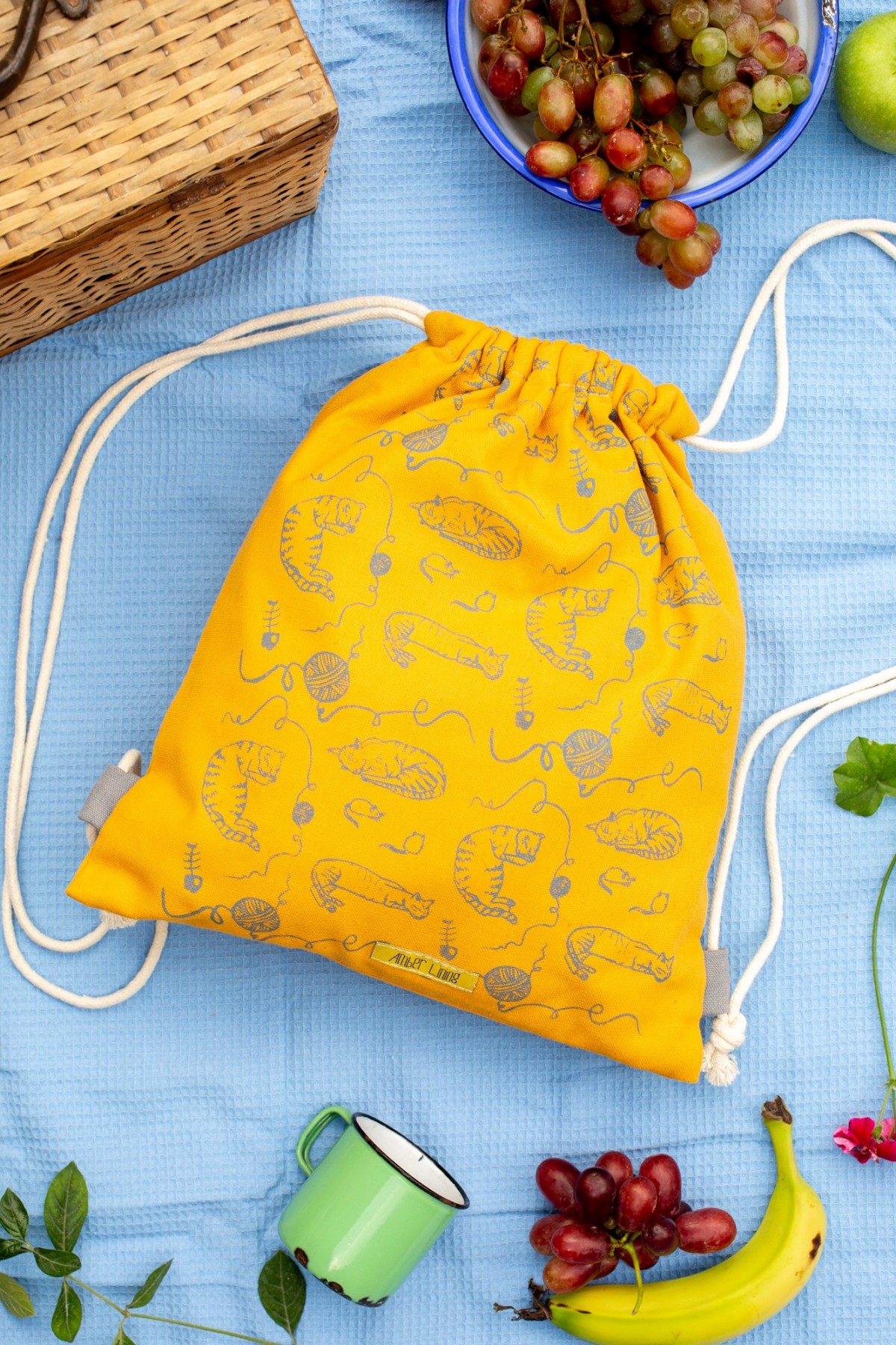The body of the bag is 100% a high quality cotton and it was screen printed with cat illustration.