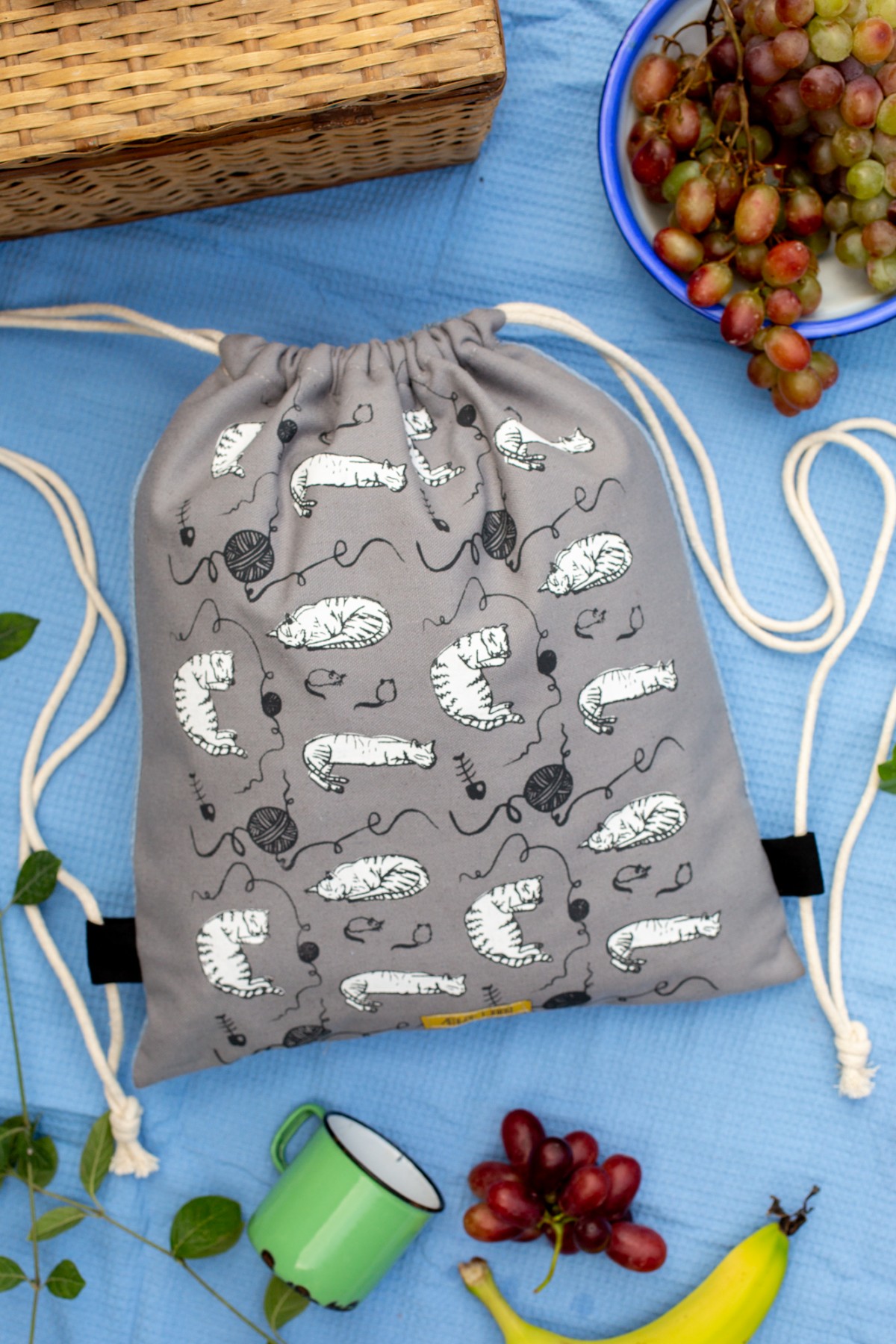 The body of the bag is 100% a high quality cotton and it was screen printed with cat illustration.