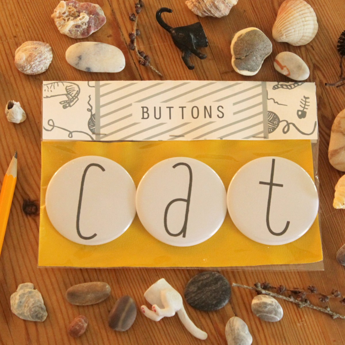 All of my products are handmade and are screen printed by hand with my original illustration and design. After the printing process I press each button at a time and pack sets in a unique package I developed for them. I try to work only with techniques, materials and designs I love and to have fun while doing so!